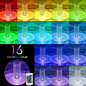 lampada da tavolo in cristallo 16 colori con telecomando, luce notturna a colori rgb per San Valentino, cristallo rosa a forma di diamante, luce tattile, camera da letto, soggiorno, atmosfera festiva, decorazione, regalo di compleanno