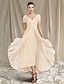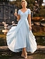 Linea ad A Abito Lunghezza alla caviglia Lunghezza Tè Abito da invitata a nozze Abito da cerimonia per signora Manica Corta Girocollo Scollo a V Elegante Pastello Formale Ospite di nozze Semi-Formale