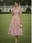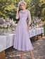 Tubino Colonna Lunghezza Tè Vestito da Festa Abito da Cocktail Abito da invitata a nozze Abito da cerimonia per signora Manica 3/4 Scollo Tondo Festa Dolce Ospite di nozze Semi-Formale Chiffon Pizzo