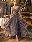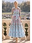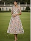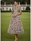 Linea ad A Abito Lunghezza alla caviglia Lunghezza Tè Vestito da Festa Abito da Cocktail Abito da cerimonia per signora Manica Corta Girocollo Scollo Illusione Elegante Vintage Lussuoso Formale