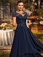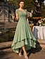 Linea ad A Asimmetrico Lunghezza Tè Vestito da Festa Abito da Cocktail Abito da invitata a nozze Abito da cerimonia per signora Manica Corta Scollo Tondo Elegante Alto Basso Formale Ospite di nozze