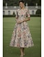 Linea ad A Lunghezza alla caviglia Vestito da Festa Abito da Cocktail Abito da invitata a nozze Abito da cerimonia per signora Manica 3/4 Collo gioiello Elegante Floreale Madre Formale Derby del