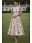 Linea ad A Abito Lunghezza alla caviglia Vestito da Festa Abito da Cocktail Abito da cerimonia per signora Mezza Manica Scollo Tondo Elegante Vintage Formale Ospite di nozze Ferie Chiffon con Stampa