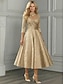 Linea ad A Lunghezza alla caviglia Lunghezza Tè Abito Formale Abito da cerimonia per signora Manica 3/4 Scollo a V Elegante Vintage Casual Formale Raso Jacquard con Pieghe