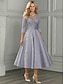 Linea ad A Lunghezza Tè Vestito da Festa Abito da Cocktail Abito da invitata a nozze Abito da cerimonia per signora Mezza Manica Scollo Tondo Elegante Vintage Ospite di nozze Raso Pizzo con