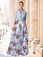 Linea ad A Lunghezza al pavimento Abito da invitata a nozze Abito Formale Abito da sera Abito da cerimonia per signora Manica 3/4 Scollo a V Elegante Vintage Formale Jacquard con Stampa floreale