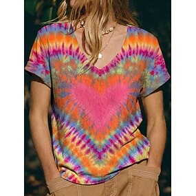 Per donna Maglietta Top estivi Stampato Grafico Tinta a nodi Classico Casual Manica Corta Girocollo Top corti Quotidiano Weekend Arcobaleno Estate Primavera Autunno