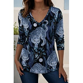 disegno episodico maglietta da donna stampa grafica animale lettera vintage elegante classico manica lunga scollo a V top lunghi sport quotidiano uscire blu estate primavera autunno inverno