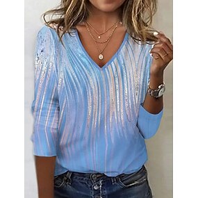 Per donna Maglietta Stampato Ombre Grafico Gradiente di Colore Vintage Elegante Classico Manica Lunga Scollo a V Top Regolari Quotidiano Weekend Blu Rosso Verde scuro Arancione Grigio Estate Primavera