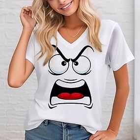 Per donna Maglietta Stampato Grafico Elegante Classico Casual Manica Corta Scollo a V Top Regolari Quotidiano Nero Bianco Rosso Rosso e Bianco Estate Primavera
