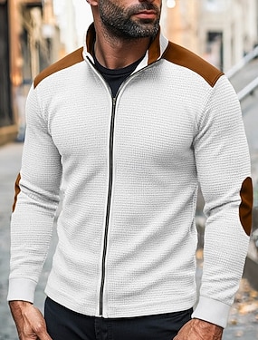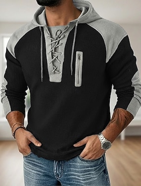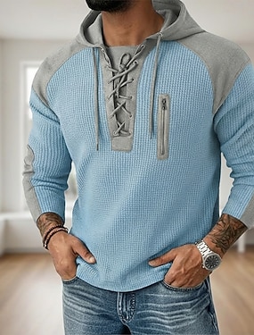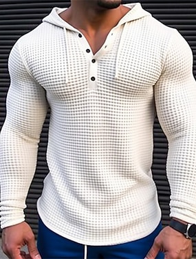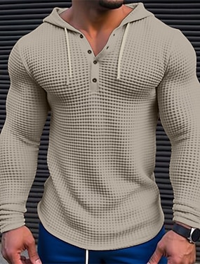 Per uomo Maglietta Maglia Henley a nido d'ape Maglia Henley Camicia a Maniche Lunghe Manica Lunga Henley Primavera & Autunno Semplice Moda Designer Essenziale Patchwork Con cappuccio Vacanza