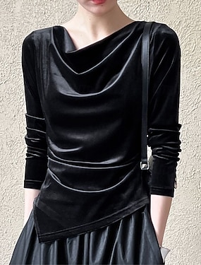 Per donna Velluto Drappeggiato Elegante Essenziale Casual Manica Lunga Scollo a Cascata Top Regolari Nero Autunno Inverno