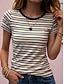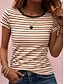 Per donna Maglietta A strisce A righe Elegante Classico Manica Corta Girocollo Top Regolari Casuale Marrone rossastro Blu nero Estate Primavera