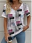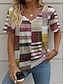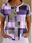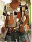 Per donna Maglietta Stampato Grafico Geometrico Elegante Classico Casual Manica Corta Scollo a V Top Regolari Casuale Quotidiano Vino Viola Marrone Estate Primavera