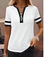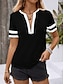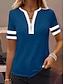 Per donna Maglietta Cerniera Grafico Geometrico Blocco di colori Vintage Hawaiano Elegante Manica Corta Girocollo Scollo a V Top Regolari Casuale Quotidiano Sportivo Blu Nero Bianco Estate Primavera