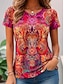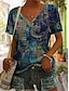 Per donna Maglietta Stampato Floreale Grafico Vintage Elegante Classico Manica Corta Scollo a V Top Regolari Casuale Quotidiano Weekend Blu Giallo Rosa Viola Verde Estate Primavera