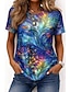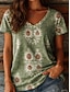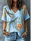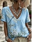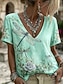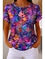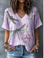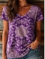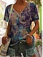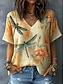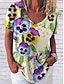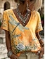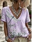 Per donna Maglietta Stampato Floreale Grafico Piante Elegante Classico Casual Manica Corta Scollo a V Top lunghi Casuale Quotidiano Giallo Viola Verde Estate Primavera