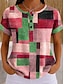 Per donna Maglietta Waffle Top a maglia con texture Maglietta Blocco di colore Stampato Grafico Geometrico Astratto Vintage Elegante Classico Manica Corta Girocollo Henley Top Regolari Casuale