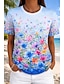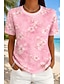 Per donna Maglietta Stampato Floreale Grafico Piante Bohemien Hawaiano Elegante Manica Corta Girocollo Top Regolari Casuale Quotidiano Blu Bianco Rosa Verde Estate Primavera