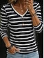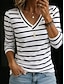 Per donna Maglietta A strisce A righe Elegante Classico Manica Lunga Scollo a V Top Regolari Casuale Nero Bianco Primavera