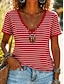 Per donna Maglietta Stampato A strisce Grafico Geometrico A righe Elegante Classico Casual Manica Corta Scollo a V Top Regolari Casuale Quotidiano Rosso Estate Primavera