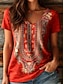 Per donna Maglietta Ricamato Stampato Grafico Tribale Elegante Classico Casual Manica Corta Scollo a V Top lunghi Casuale Quotidiano Rosso Viola Verde Beige Estate Primavera