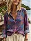 Per donna Camicia Grafico Geometrico Vintage Elegante Moderno Manica Lunga Colletto a Camicia Top Regolari Casuale Quotidiano Blu Estate Primavera