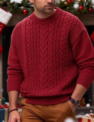 Per uomo Maglioni di Natale Maglione Maglione in maglia a trecce Maglione a maglia Maglione lavorato a maglia A Coste Maglia Top Regolari Lavorato a maglia Semplice Girocollo Vintage Moda Natale