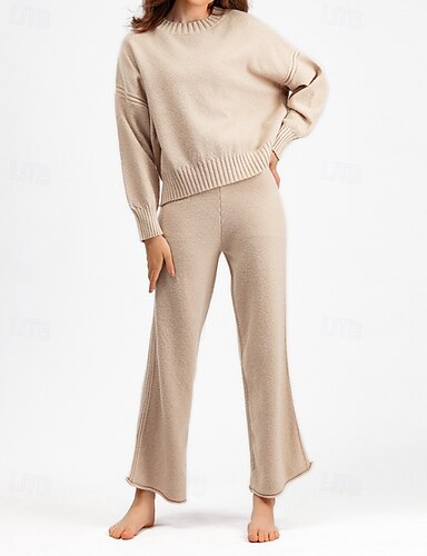 Per donna Felpa Casual Morbido Colore Puro A Coste Girocollo Lavorato a maglia Manica Lunga Top Regolari Maglia All'aperto Quotidiano Weekend Rosa Vino Autunno Inverno