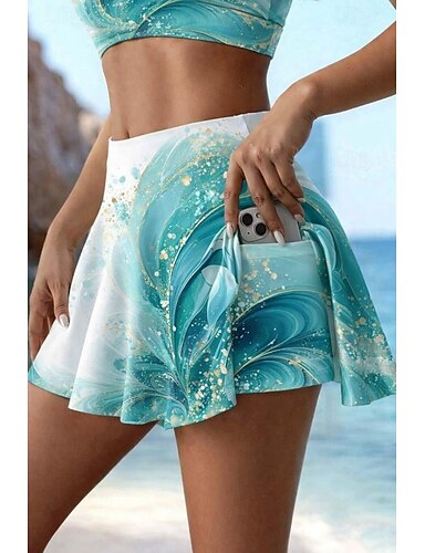 Per donna Gonna da vacanza Gonna da tennis Elegante Moda Hawaiano Abbigliamento da Spiaggia Sopra il ginocchio Vita Alta Gonne Grafico Stampa galassia stellata Stampato Elasticizzato Quotidiano