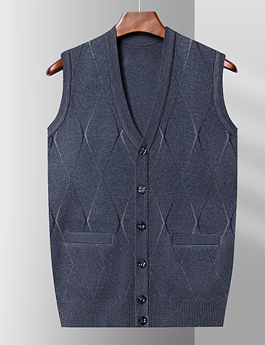 Per uomo Felpa Gilet maglione Maglione di lana Cachemire Cardigan Maglione A coste Maglia Standard Tasche Lavorato a maglia Rombo A V Top caldi Contemporaneo moderno Da tutti i giorni Per uscire