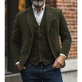 Per uomo Giacca in Velluto a Coste Colletto ad incastro Moda Classico Casual Tinta unita Blazer Nero Marrone Verde Vestibilità su misura Monopetto a tre bottoni