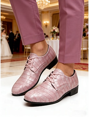 mocassini eleganti da uomo in pelle sintetica rosa con stampa coccodrillo, finitura liscia, stile moderno ed elegante, perfetti per uomini eleganti a matrimoni e feste