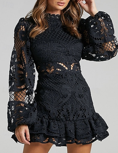 Per donna Mini Abito Abito nero Abito in Pizzo Elegante Moderno Manica a Lanterna All'aperto Compleanno Cocktail party Taglia piccola Semplice Manica Lunga Girocollo Nero Primavera Autunno