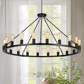 lampadario a led nero su ruote 20-luce grande lampadario rustico rustico di campagna lampada industriale per sala da pranzo soggiorno cucina isola foyer corridoio