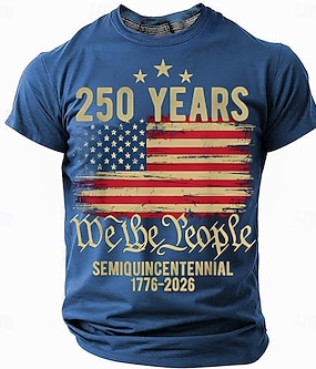 4 luglio 2026 250° Giorno della Memoria Maglietta a maniche corte girocollo con stampa 3D per uomini Casual quotidiana