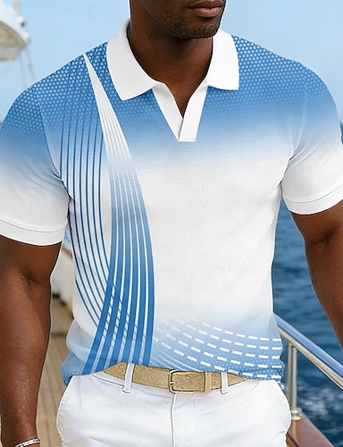 Per uomo Geometrico Golf Polo Sportivi Manica Corta Magliette polo Camicie con Colletto Casual Athleisure Ferie Stampa 3D Bottoni Tessuto retato traspirante Estate Primavera Blu azzurro cielo Giallo