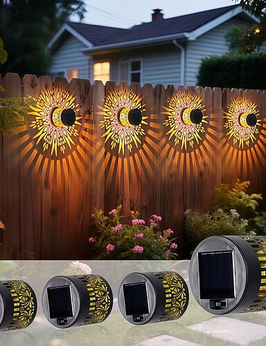 4 luci da parete a proiezione in metallo cavo, impermeabili e solari, per esterni, ideali per giardino, patio, cortile, prato, recinzione, scalini, vialetto, terrazza, veranda, villa, come