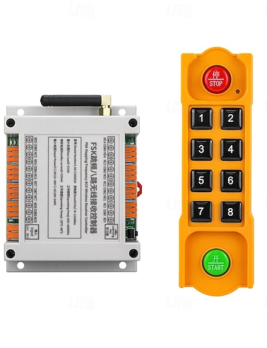 Telecomando industriale wireless a 8 canali, radiocomando a salto di frequenza FSK a 433 MHz per gru, paranchi, verricelli e sollevatori, 8 pulsanti di avvio/arresto, ricevitore universale da 12-36 V