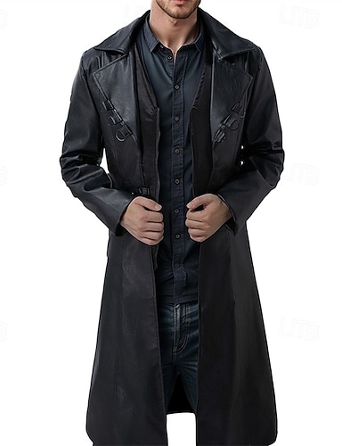 Per uomo Cappotto Trench Trench lungo Vacanza Quotidiano Autunno Inverno Pelle PU Antivento Capispalla Abbigliamento Moda Classico Semplice Tasca Bavero Monopetto