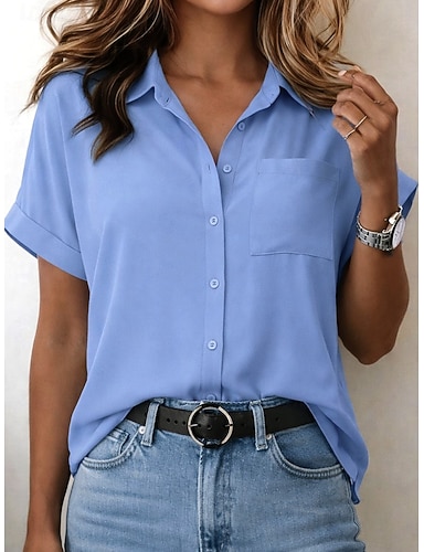 Per donna Blusa Tasca Bottoni Tinta unica Moda Elegante Casual Manica Corta Colletto a Camicia Top Regolari Quotidiano Nero Bianco Rosa Blu marino Azzurro cielo Estate Primavera Autunno
