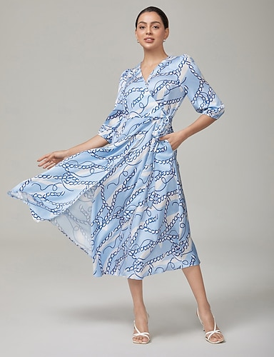 Da donna Femminile Vestito Casual Blu Manica 3/4 Estate Primavera Scollo a V Stile Boho Moderno XS S M