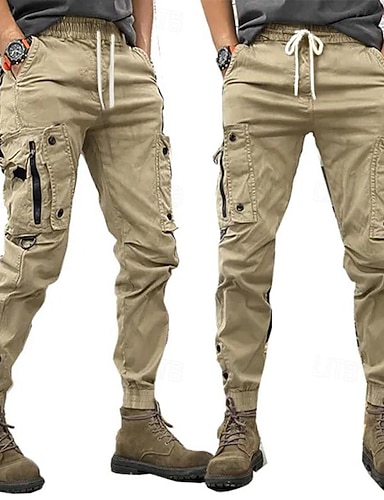 Per uomo Pantaloni cargo Pantaloni A cordoncino Vita elastica Multi tasca Liscio Indossabile Esterno Giornaliero Campeggio e hiking Di tendenza Classico Nero Verde militare