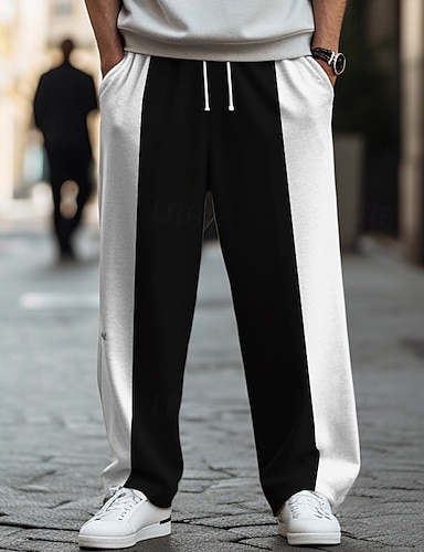 Per uomo Pantaloni da tuta Pantaloni Pantaloni della tuta a gamba dritta Coulisse Tasca Elastico in vita Blocco di colori Comodità Sport all'Aperto Quotidiano Moda Casual Nero Bianco Micro-elastico