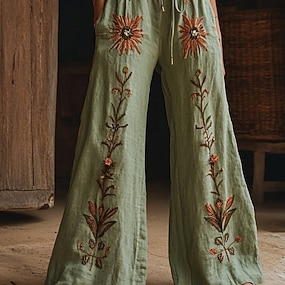 Pantaloni Chinos Boho da Donna a Gamba Larga Baggy Vacanza Vintage Stile Etnico Lunghezza Completa Vita Alta Grafica Floreale Stampa Termica Calda Morbida Traspirante Micro-elastica Vacanza Street