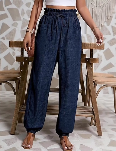 Per donna Pantaloni in cotone e lino Pantaloni Pantaloni Estivi Pantaloni Larghi Vacanza Essenziale Casual Lunghezza intera Vita Alta Semplice Coulisse Tasca Fascia Elastica Comodità Morbido