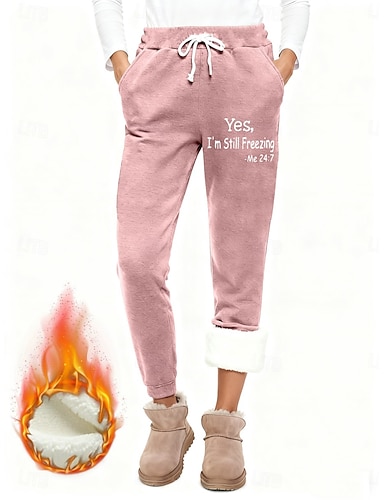 Per donna Pantaloni da tuta Pantaloni in Pile Pantaloni Eleganti Vacanza Moda Casual Lunghezza intera Vita Alta Grafico Lettera Coulisse Tasca Stampato Calore Termico Antivento Comodo Elasticizzato