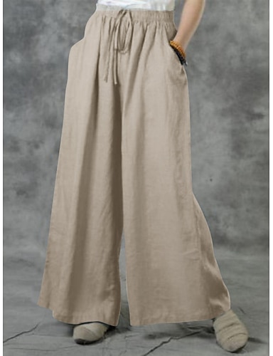 Pantaloni in cotone e lino da donna Pantaloni estivi Pantaloni larghi Pantaloni da spiaggia Vacanza Base Casual Lunghezza intera Alta vita Semplice Con cordino Gamba larga Comfort All'aperto