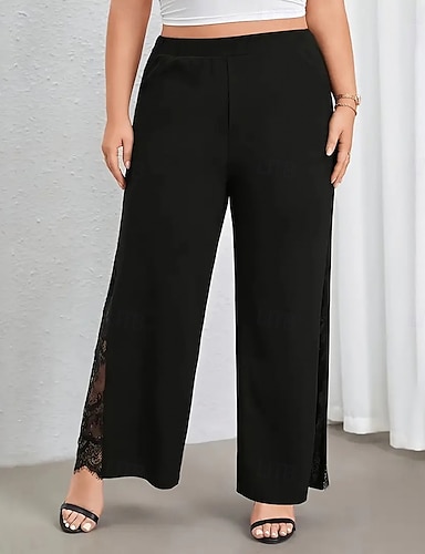 Per donna Pantaloni Pantaloni Estivi Pantaloni da Spiaggia Pantaloni casual Vacanza Moda Casual Quotidiano Lunghezza intera Vita Alta Semplice Pizzo Patchwork Gamba larga Comodità Morbido Traspirante