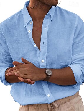 Per uomo camicia di lino Camicia estiva Abbigliamento mare Maglietta informale Camicia con bottoni Liscio Informale Giornaliero Nero Bianco Azzurro cielo Grigio Manica lunga Collare da campo